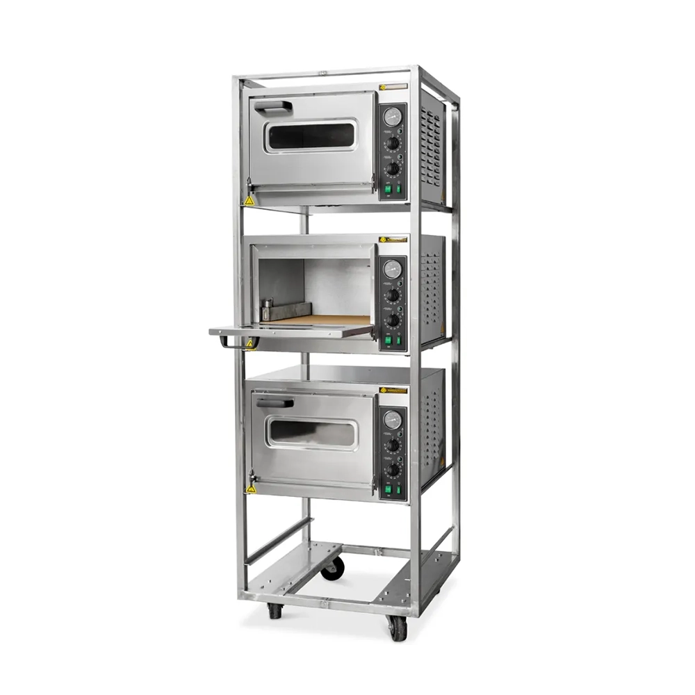 Het is mogelijk om er een bijpassend rek bij te leveren. De prijs van een dergelijk rek bedraagt € 395,- incl. btw. De hoogte van het rek, en ook de hoogtes van de oven(s) is nader te bepalen (elk rek wordt op maat gemaakt).