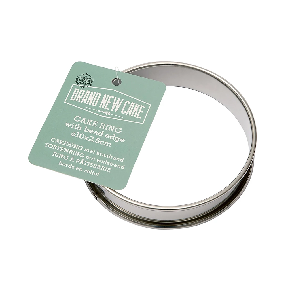 Met deze cakering met kraalrand Ø10×2,5 cm creëer je de mooiste creaties en (kleine) lekkernijen. Uitermate geschikt voor het maken van koekjes, rondo’s, cakejes, tartelettes of desserts. Deze cakering heeft een doorsnede van 10 cm en een hoogte van 2,5 cm. Daarnaast is deze cakering ook te gebruiken voor het uitsteken van koekjes of biscuitbodems. De stevige kraalrand zorgt ervoor dat je creaties en (kleine) lekkernijen de juiste vorm goed behouden.