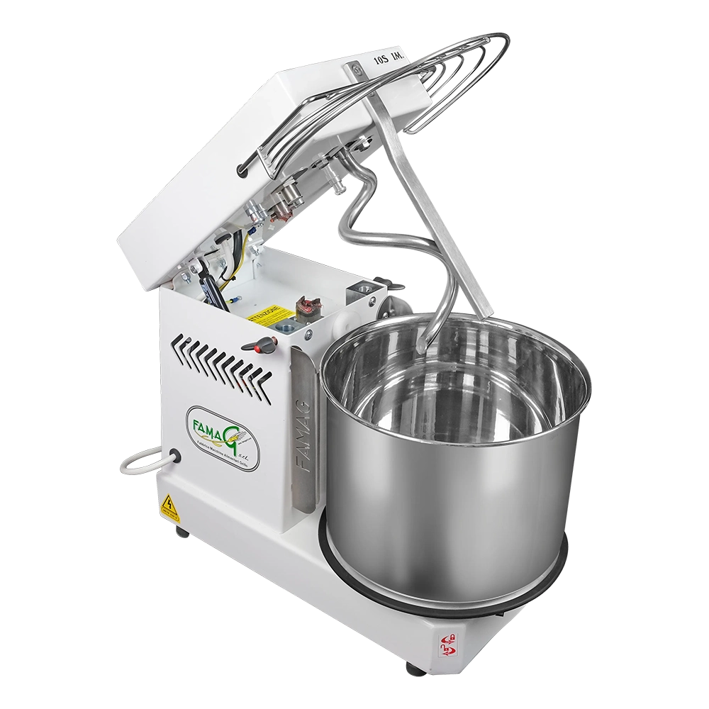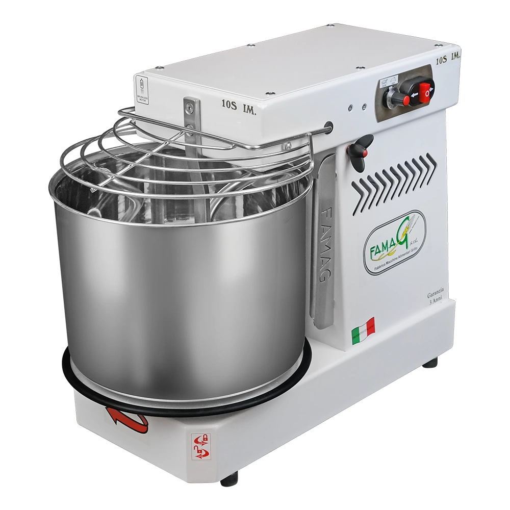 De Famag Griletta spiraalkneder IM 10S/230 met 10 versnellingen is de enige spiraalkneder voor op het aanrecht waarmee je 10 KG deeg maakt. Door de snelheidsregeling kan heel eenvoudig deeg met hoge hydratatie worden bereid. Hiermee gaat het maken van jouw favoriete brood- of pizzadeeg absoluut naar een hoger niveau. Famag staat bekend om zijn kwaliteit en degelijkheid welke niet vergeleken mag worden met bijvoorbeeld een Maxima. Een ideale spiraalkneder geschikt voor zowel thuis als in de bakkerij en professionele keuken.