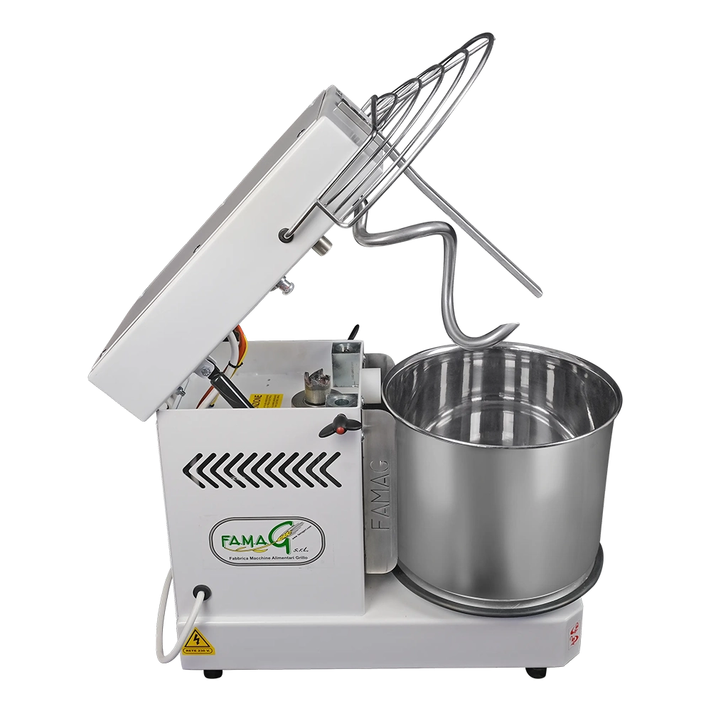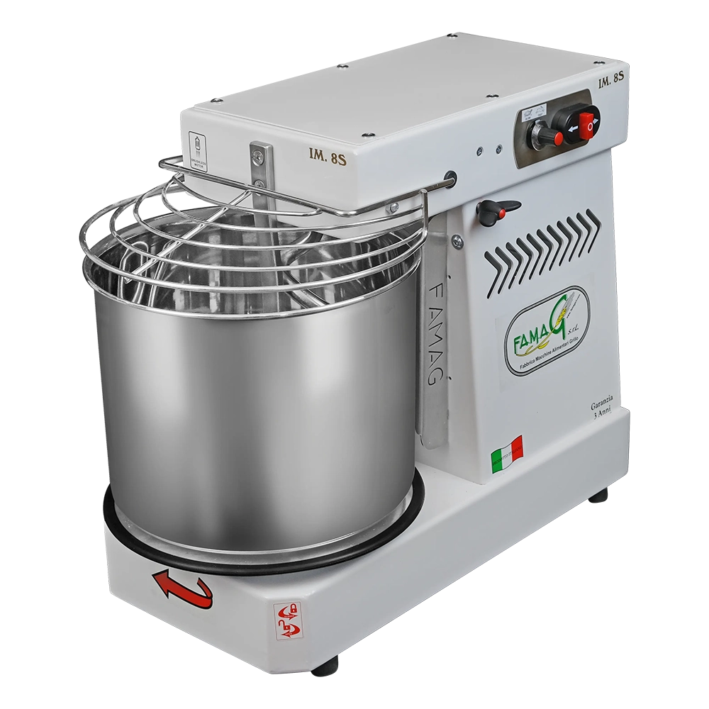 De Famag Griletta spiraalkneder IM 8S/230 met 10 versnellingen is de enige spiraalkneder voor op het aanrecht waarmee je 8 KG deeg maakt. Door de snelheidsregeling kan heel eenvoudig deeg met hoge hydratatie worden bereid. Hiermee gaat het maken van jouw favoriete brood- of pizzadeeg absoluut naar een hoger niveau. Famag staat bekend om zijn kwaliteit en degelijkheid welke niet vergeleken mag worden met bijvoorbeeld een Maxima. Een ideale spiraalkneder geschikt voor zowel thuis als in de bakkerij en professionele keuken.