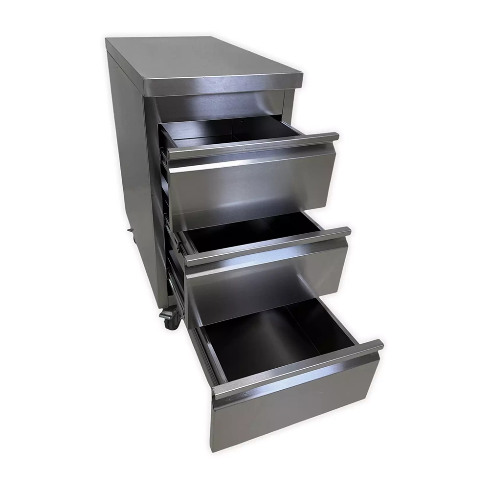 INOX tafel 3 lades op wielen
