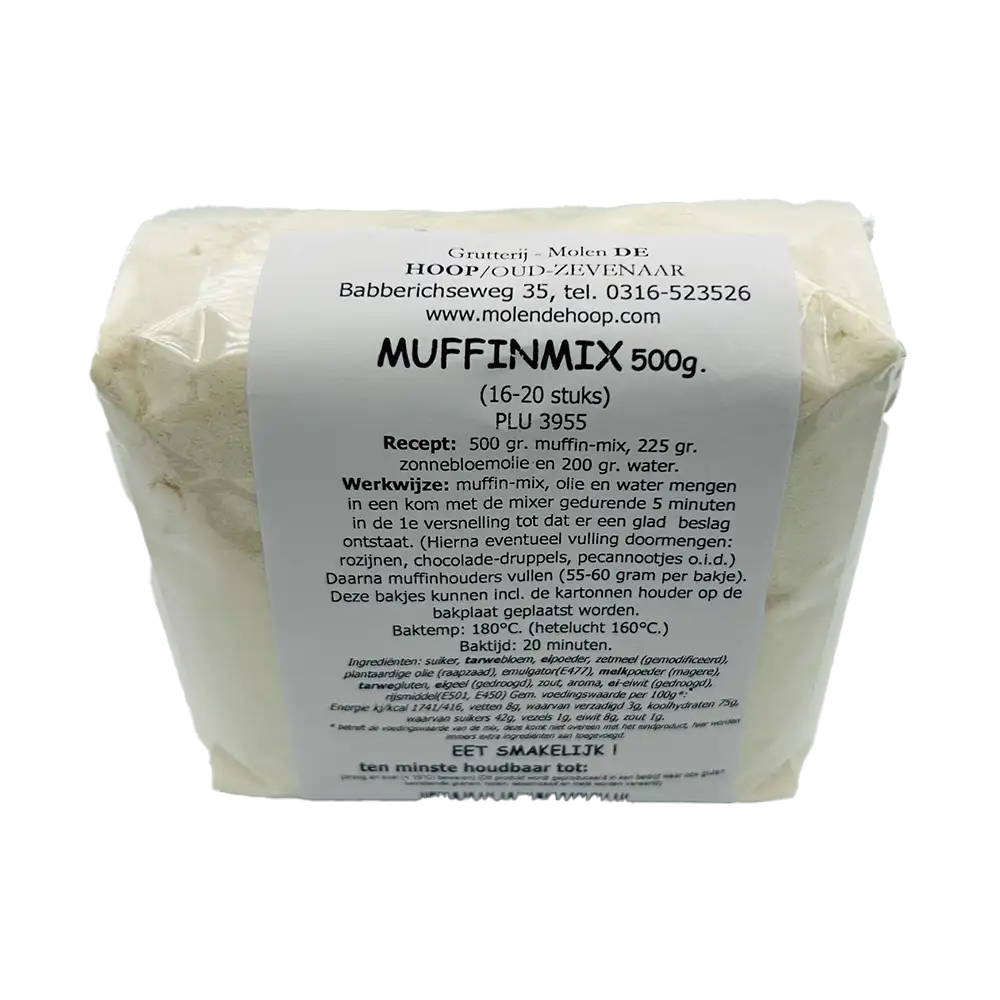 Maak eenvoudig heerlijke muffins met deze mix van Molen de Hoop. Je hoeft alleen maar water en zonnebloemolie toe te voegen. Met deze mix maak je ca. 15 tot 20 muffins. Deze mix is ook te gebruiken voor het maken van cupcakes.