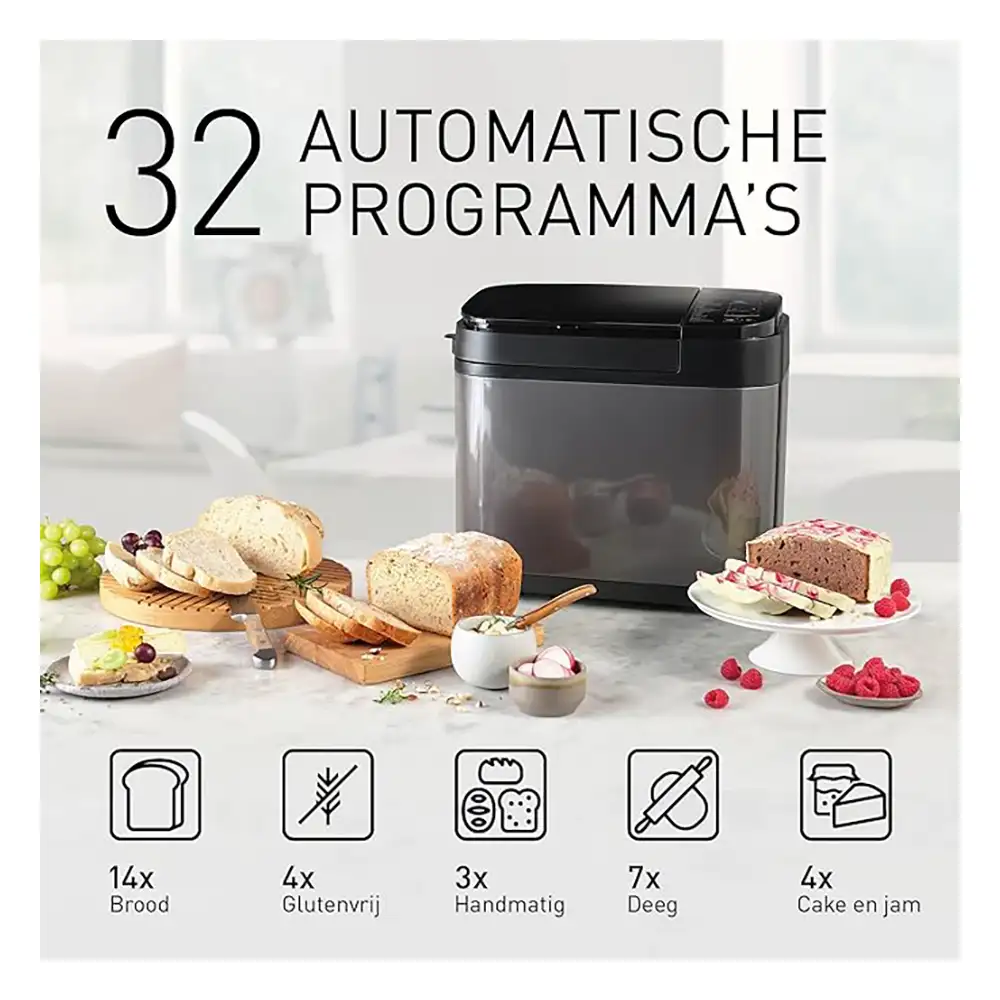 - gewicht van het brood* ca. 630, 800, 950 gram (M, L, XL)