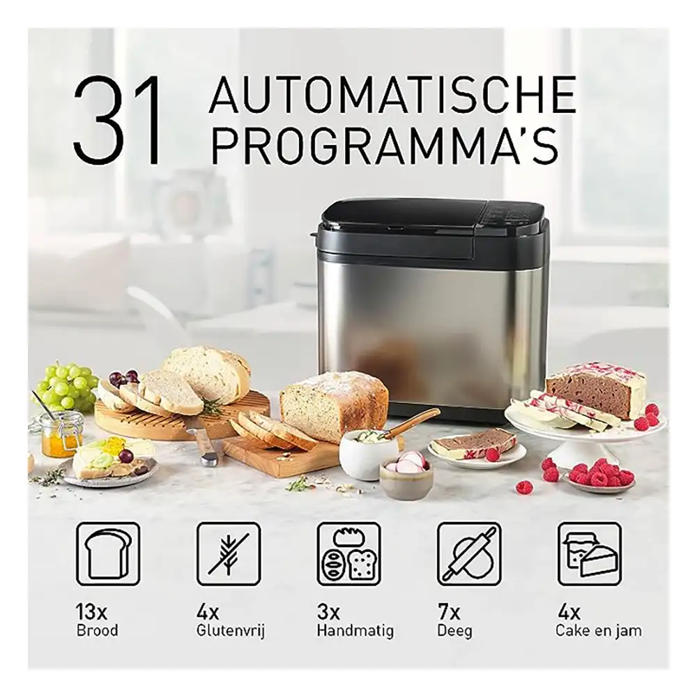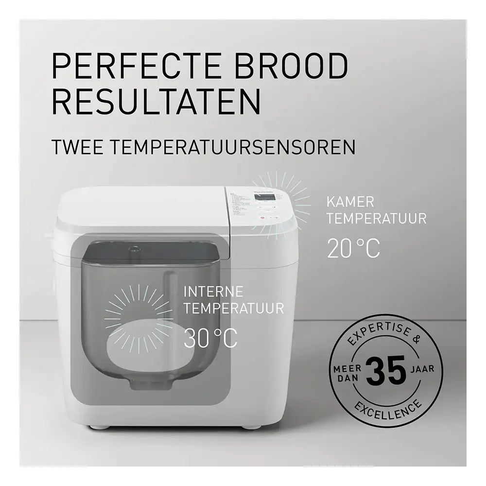 - gewicht van het brood* ca. 630, 800, 950 gram (M, L, XL)