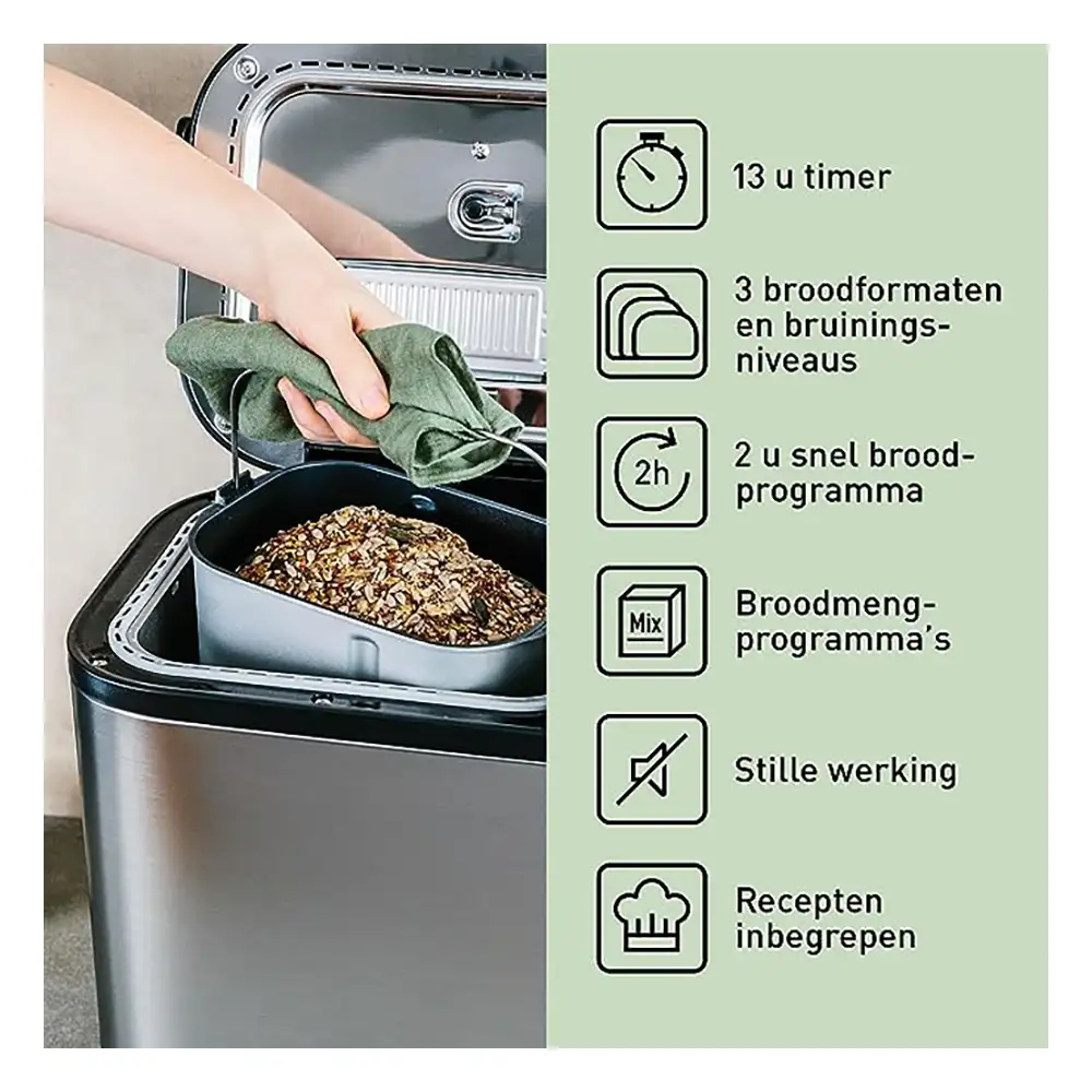 Met de Panasonic SD-YR2550SXE broodbakmachine wordt het thuisbakken van heerlijk, ambachtelijk en vers brood wel heel eenvoudig. Gebruik een broodmix (van bv Molen de Hoop) naar keuze, voeg water en gist toe en voilà! Geniet van de heerlijke geur van vers gebakken brood.