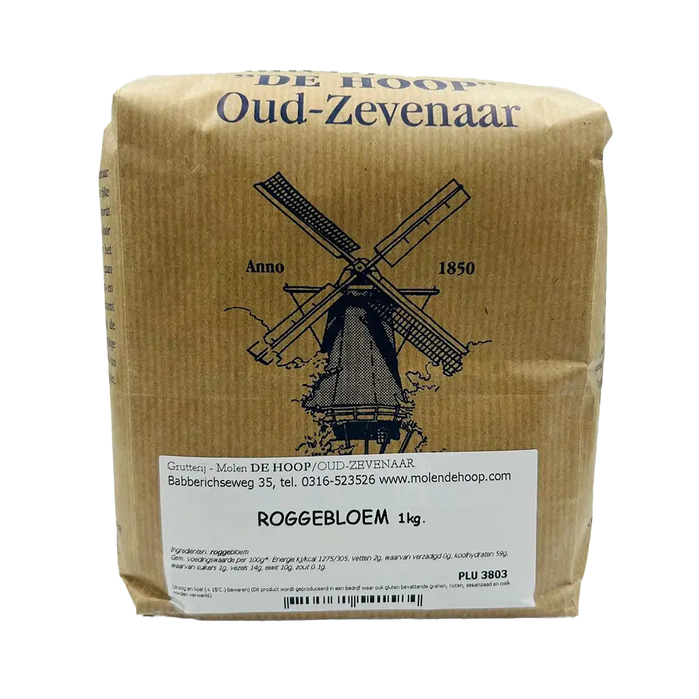 Molenstenen gemalen rogge, uitgezeefd tot bloem. Wil je een brood maken met minder verzadigde vetten en een bron aan vezels, kies dan voor roggebloem.