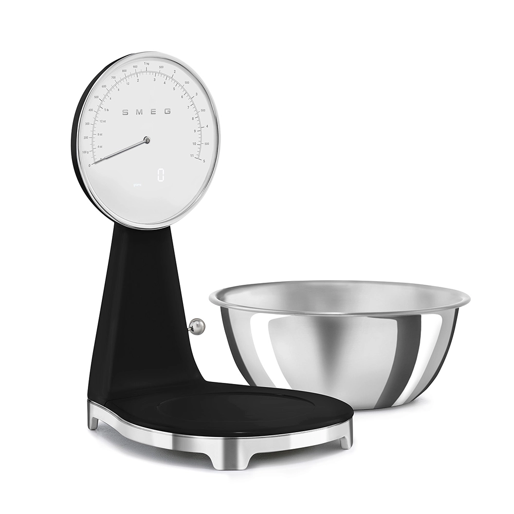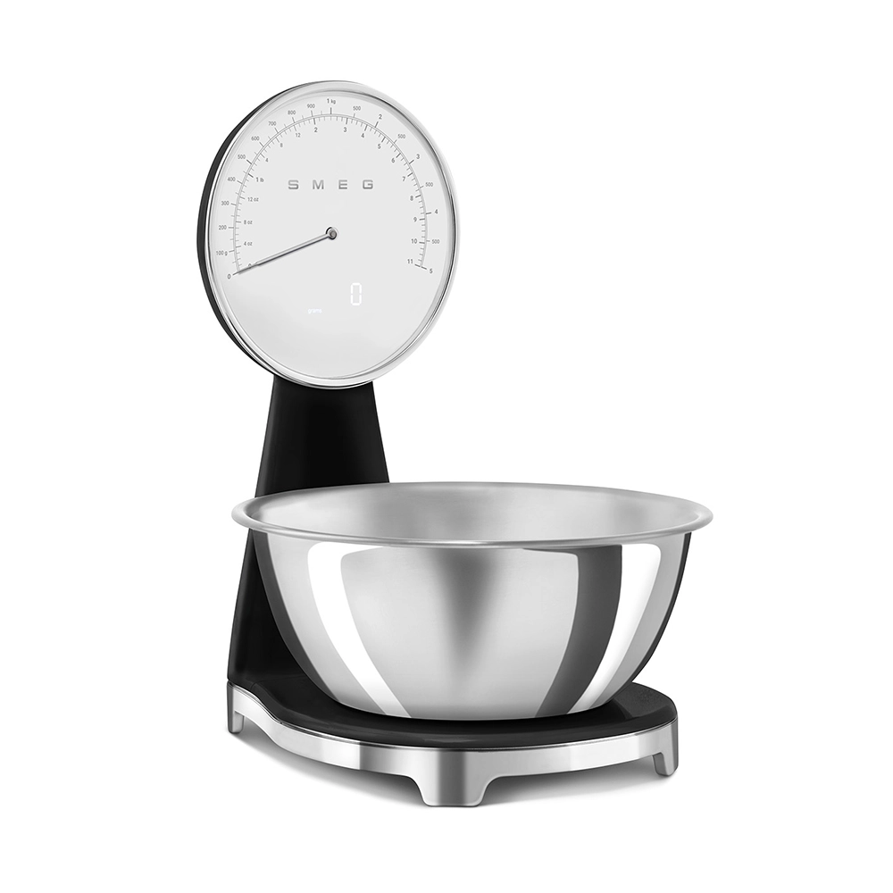 De analoge en digitale Smeg keukenweegschaal in stijlvolle zwarte kleur combineert het iconische jaren 50 design met moderne functionaliteit. Perfect voor iedereen die nauwkeurig wil afwegen zonder concessies te doen aan uitstraling en gebruiksgemak. Deze design keukenweegschaal is een praktische én stijlvolle toevoeging aan iedere keuken.