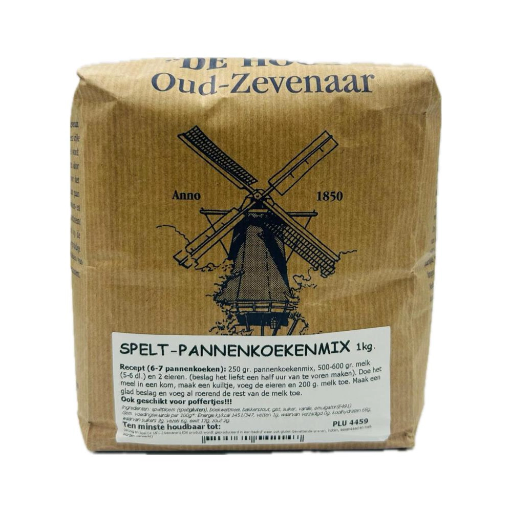 Met de spelt pannenkoeken mix van Molen de Hoop maak je heerlijke spelt pannenkoeken. Deze mix is ook geschikt voor het maken van poffertjes.