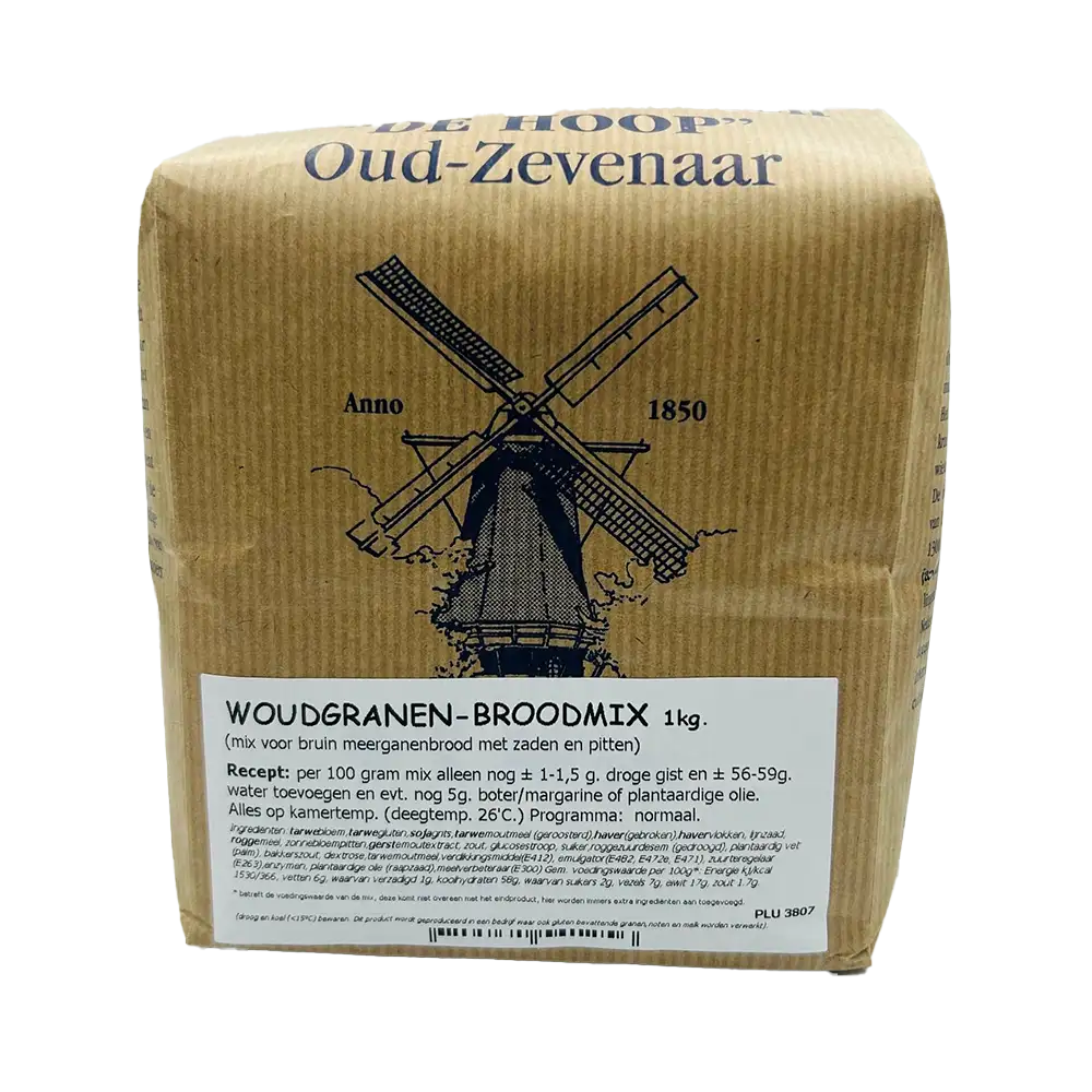 Broodmix voor een heerlijk luchtig donker meergranenbrood met zaden en pitten. Aan deze Woudgranen broodmix van Molen de Hoop hoef je enkel gist en water toe te voegen. Eetsmakelijk.